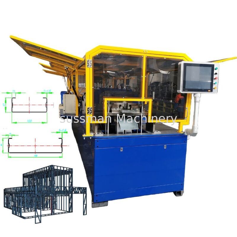 Maszyna do produkcji lekkich konstrukcji stalowych to automatyczna linia produkcyjna. Szerokości 75 mm, 89 mm, 140 mm to popularne rozmiary. Maszyna zawiera odwijak, wykrawanie hydrauliczne, cięcie hydrauliczne, 6-metrowy odwijak pasywny, komputer przemysłowy i tak dalej.